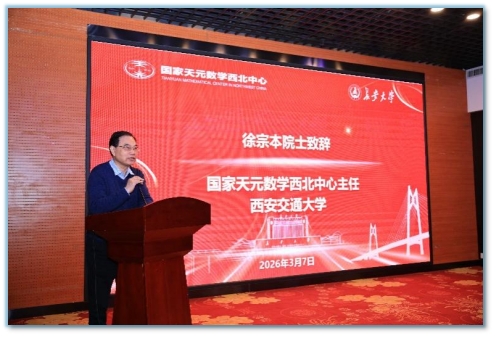 徐宗本院士代表国家天元数学西北中心致辞。首先,他详细介绍了中心的定位、目标和任务;其次,他指出求解偏微分方程的传统及深度学习方法是中心2026年度重点资助的学术活动主题之一,希望与会者多关注人工智能和计算数学的深度融合,为科学计算寻求更加科学而高效的理论与方法;最后,他表示中心将继续支持西北地区数学工作者开展学术活动。