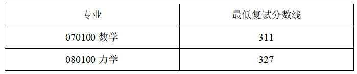 表一:理学院招生专业及最低复试分数线