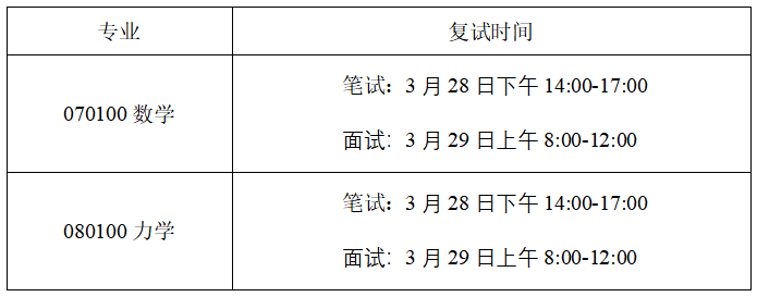 表二:各专业复试时间