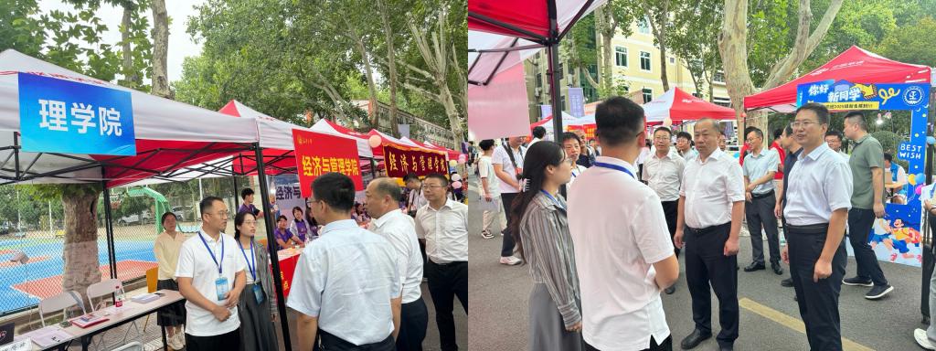 校领导亲临我院迎新值班点指导工作,实地查看值班点的布置与运行情况,并认真听取关于报到流程、新生人数统计及服务保障等方面的工作汇报,叮嘱工作人员和志愿者要主动服务、耐心答疑,使每一位新生都能感受到学校与学院的温暖与关怀。