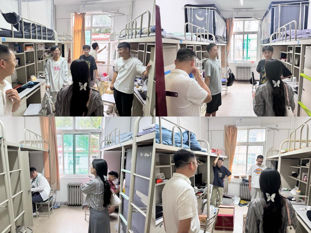迎新期间,辅导员周小娟、研究生教学秘书敖文昊与兼辅李姬婧一行走访新生宿舍,与同学们面对面交流,细致了解住宿条件与设施配置,并就宿舍电器使用、生活服务设施位置等常见问题作了详细解答,贴心地为新生适应校园生活提供指导。