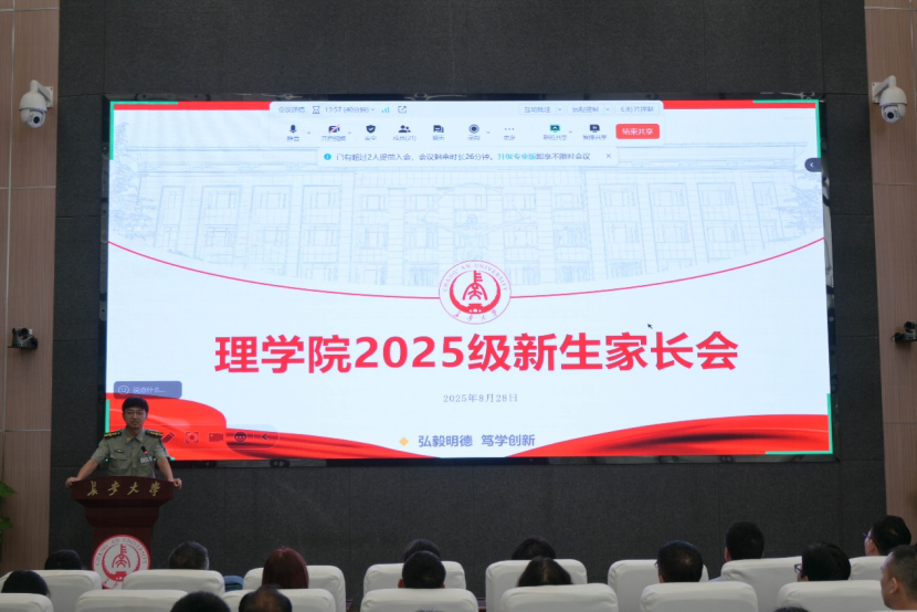 为帮助新生家长深入了解学院情况、专业特色及学生培养体系,搭建家校协同育人桥梁,8月28日,理学院召开了2025级本科新生家长会。副院长徐春龙,院党委副书记屈颖,心理中心教师霍倩倩,数学学科副主任、信息与计算科学系主任高普阳,应用物理系副主任王凤龙,工程力学系副主任马维力,院团委书记、辅导员杨雪菲出席会议,全体2025级本科新生家长参会,会议由杨雪菲主持。