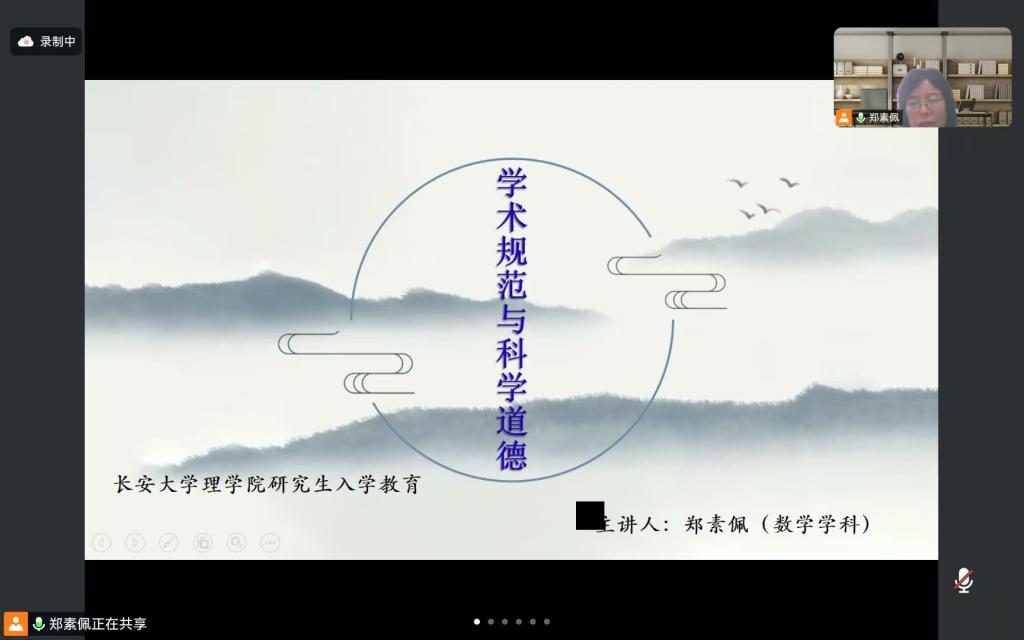 为帮助研究生树立正确的学术价值观,明确学术规范要求,防范学术不端行为,夯实科研道路的基石,9月13日,理学院通过腾讯会议线上举办了2025级研究生学术规范与科学道德教育培训会。会议由郑素佩老师主讲,2025级全体研究生参加。