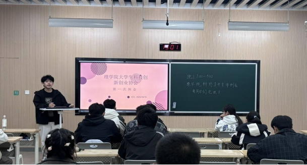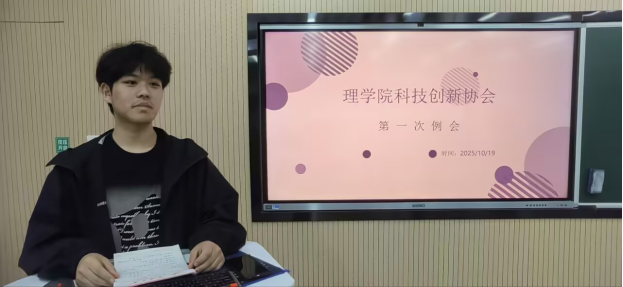 10月19日晚,理学院大学生科技创新创业协会在WX2203召开2025-2026学年第一次全体例会,指导老师赵建华,院科协主席程显凯,副主席郭杰、代伟妮与科协全体成员参会。