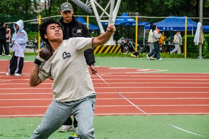 跳远沙坑前,运动员助跑、起跳、落地,每一次腾空都向着更远的距离发起挑战,落地时溅起的细碎沙粒,见证着我院学子对“更高目标”的追求;铅球赛场中,选手们凝神聚力,将力量与技巧结合,铅球在空中划出优美弧线,展现刚柔并济的力量之美。
