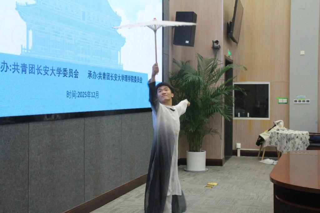 为激发青年学子对中华优秀传统文化的热爱,让诗意在校园中流淌,12月4日,理学院于师生服务大厅第一报告厅举办长安大学第二十五届大学生文化节之“渭水诗声·长安雅集”长安大学诗词大会。理学院党委副书记屈颖出席,理学院团委书记杨雪菲、人文学院团委副书记张世诚、人文学院文体协会主席折雨欣、材料学院文体协会主席贺梦琦、理学院文体协会主席王孟歌担任评委,本次比赛由文体协会孟春晓、赵枭毅主持。