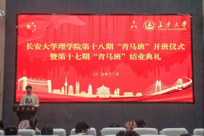 为学习宣传贯彻习近平新时代中国特色社会主义思想,深入学习贯彻党的二十大和二十届历次全会精神,培育堪当民族复兴重任的时代新人和青年马克思主义者,12月25日,理学院于师生服务大厅第二报告厅举办第十七期“青马班”结业典礼暨第十八期“青马班”开班仪式。理学院党委副书记屈颖、团委书记杨雪菲、团委副书记姜雨彤、青年思想教育中心主任李佳睿、青年思想教育中心副主任周志豪及第十七期、第十八期“青马班”全体学员参加典礼,典礼由杨雪菲主持。