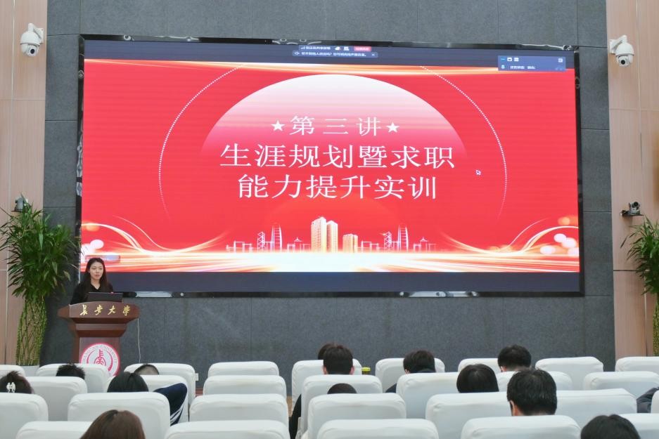 随后,王婧斐结合毕业生就业数据和行业发展趋势,围绕就业关键时间节点、就业信息筛选、求职渠道、简历优化、面试技巧等内容进行细致讲解,为同学们提供实用指导。她结合学校就业服务平台资源,提醒同学们关注官方招聘信息,规范签约流程,顺利完成从校园到职场的平稳过渡。