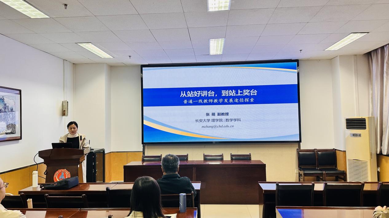 为助力青年教师专业发展,落实学院“青年教师教学能力提升计划”,不断提升学院教师教育教学水平,10月17日下午,学院在南校区交通科技大厦602会议室举办“青年教师教学能力提升计划”系列讲座2025年度第二讲,邀请第五届全国高校教师教学创新大赛一等奖获得选手、我院张萌副教授作题为“从站好讲台,到站上讲台”的主题报告,分享教学创新改革与创新大赛经验。讲座由理学院副院长徐春龙主持,近70余位教师参加活动。