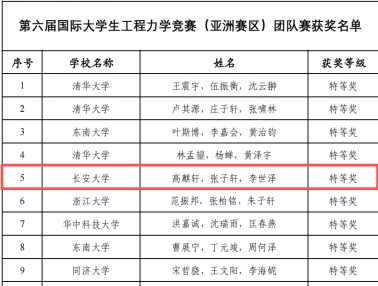 2025年12月5日至12月7日,第六届国际大学生工程力学竞赛(亚洲赛区)在河海大学江宁校区成功举办,我校学子在比赛中再获佳绩,斩获个人赛特等奖1项、一等奖3项、二等奖4项,团队赛特等奖1项、二等奖1项,长安大学代表队荣获团体奖(集体奖)一等奖,拓宏亮、刘雪梅和马维力三位老师荣获优秀指导教师。